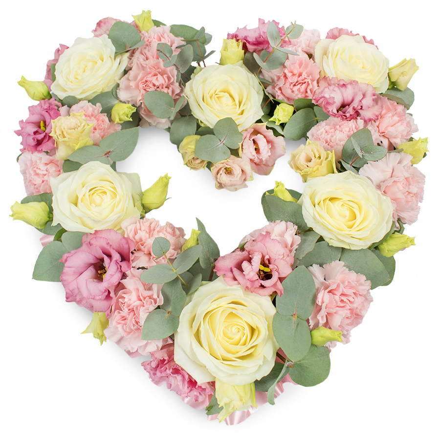 Celebrate a lifetime of memories with our Exquisite Memorial Tribute Bouquet, a luxurious floral expression designed to honor and cherish. This unique bouquet harmonizes the pristine beauty of white roses, the gentle charm of pink carnations, and the delicate allure of pink lisianthus, perfectly accented by fresh eucalyptus leaves. Each flower is hand-selected to ensure top quality and exceptional freshness. The bouquet features natural guard petals on the roses, ensuring the protection of the inner blossoms during transit so that their true beauty unfolds upon arrival.